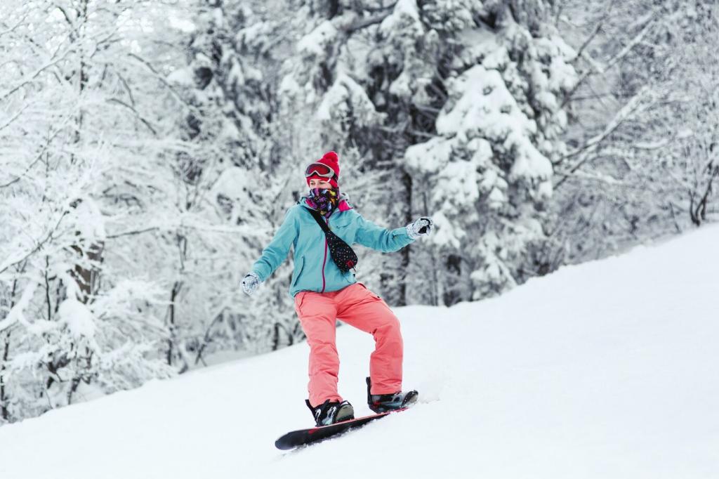 Passe Druck und Kantenwinkel laufend an. In dichter Windpress kurze, entschlossene Schwünge; im tiefen Pulver rhythmisch, zentriert, mit aktivem Vorfuß. Welche Drills helfen dir in chaotischen Bedingungen? Teile deine Lieblingsübungen für Stabilität und Flow.